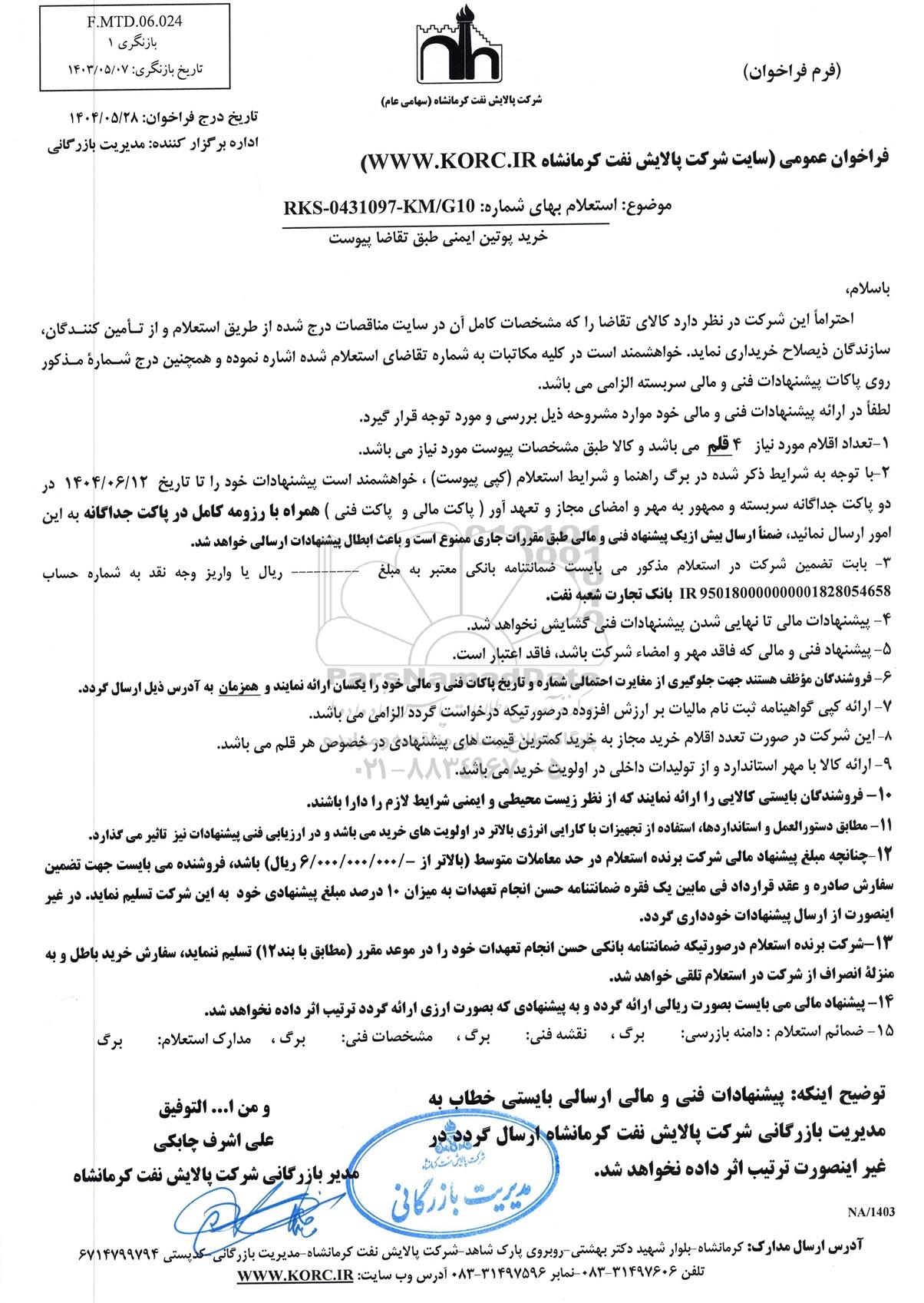 فراخوان عمومی (سایت شرکت پالایش نفت کرمانشاه WWW.KORC.IR ) ؟