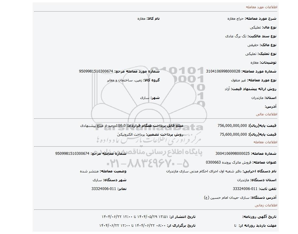 شرح مورد معامله: حراج مغازهنام کالا: مغازه