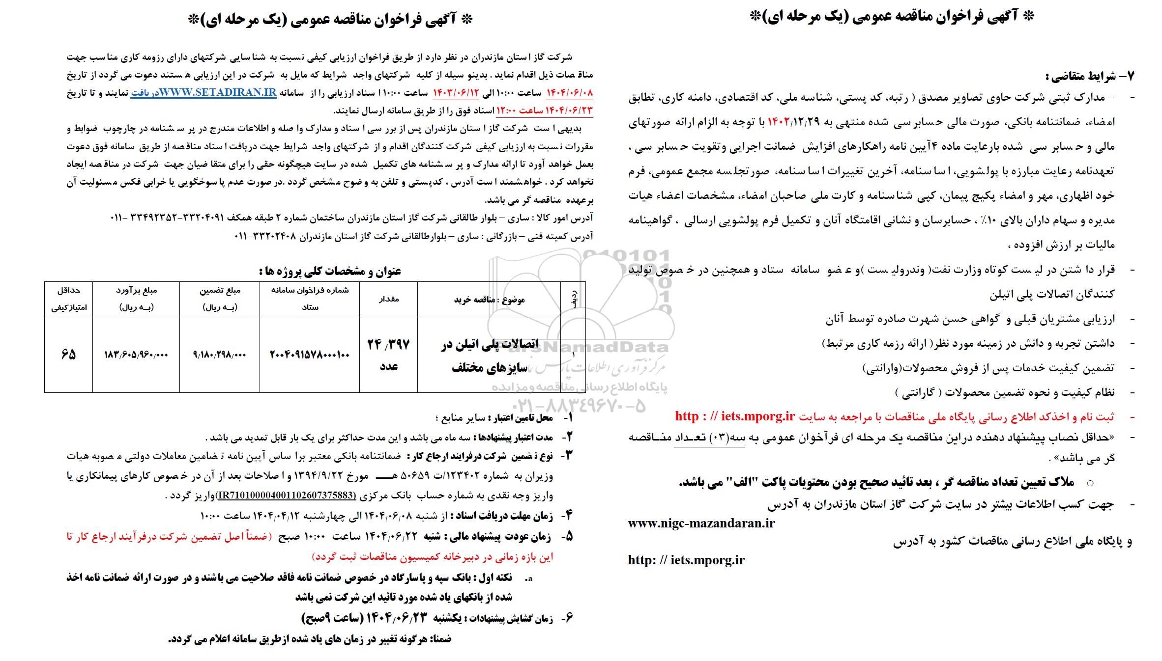و پایگاه ملی اطلاع رسانی مناقصات کشور به آدرس