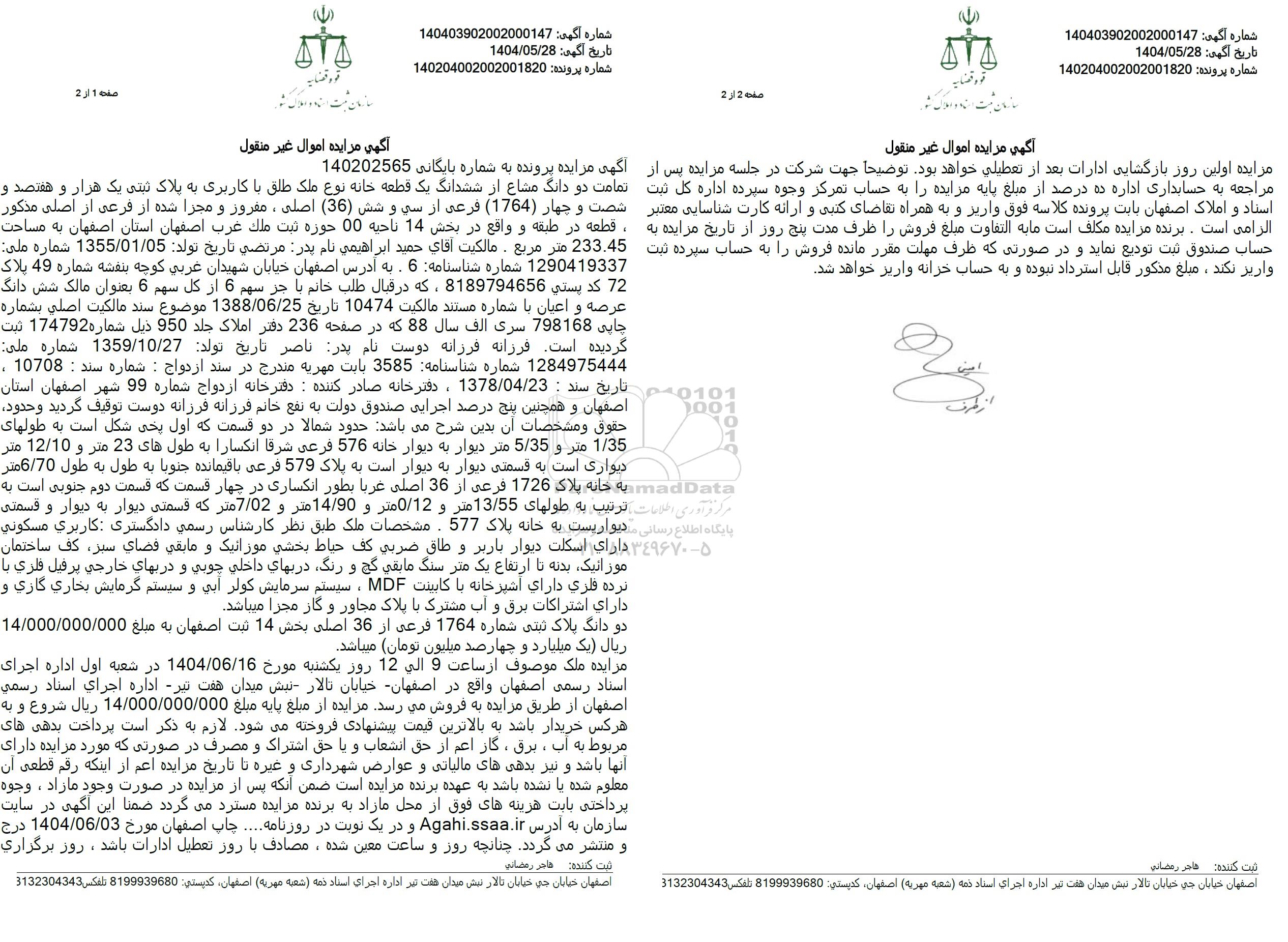 شماره آگهی : 140403902002000147