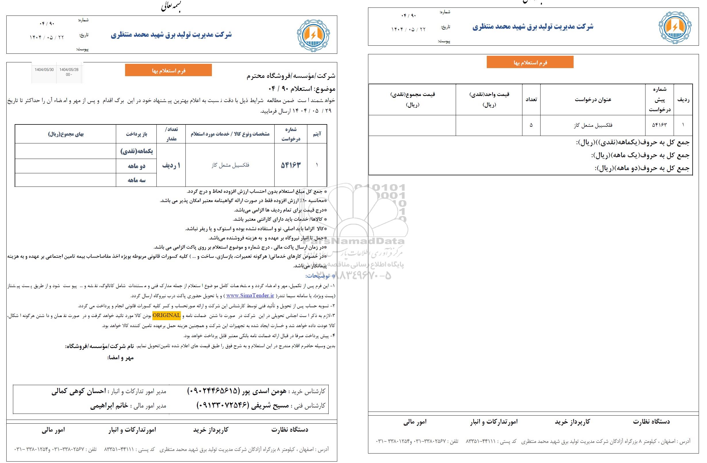 1 | 54163 | فلکسیبل مشعل گاز | 1 ردیف | یکماهه (نقدی) دوماهه سه ماهه |