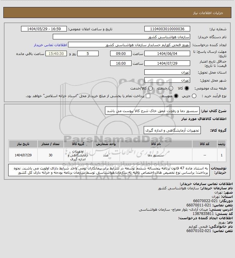 استعلام سنسور دما و رطوبت عمق خاک شرح کالا پیوست می باشد, استعلام سنسور دما و رطوبت عمق خاک شرح کالا پیوست می باشد