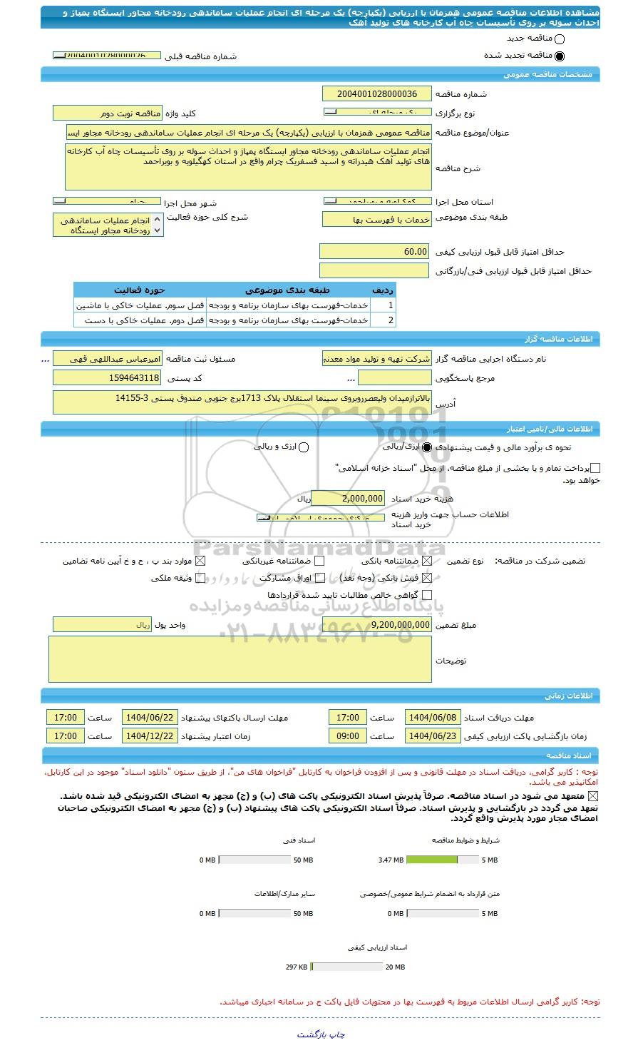 | شماره مناقصه | 2004001028000036 | |||||||||||