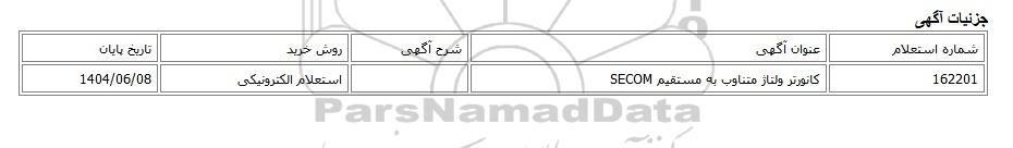 | 162201 | کانورتر ولتاژ متناوب به مستقیم SECOM | استعلام الکترونیکی | 1404/06/08 |