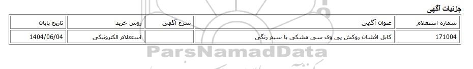 استعلام الکترونیکی کابل افشان روکش پی وی سی مشکی با سیم رنگی, استعلام الکترونیکی، کابل افشان روکش پی وی سی مشکی با سیم رنگی