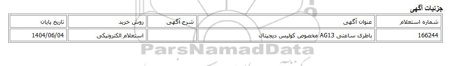 استعلام الکترونیکی باطری ساعتی AG13 مخصوص کولیس دیجیتال, استعلام الکترونیکی، باطری ساعتی AG13 مخصوص کولیس دیجیتال