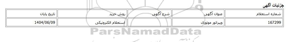 | 167299 | ویبراتور موتوری | استعلام الکترونیکی | 1404/06/09 |