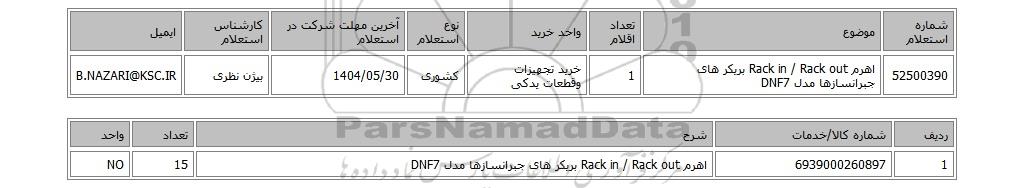 | 52500390 | اهرم Rack in / Rack out بریکر های جبرانسازها مدل DNF7 | 1 | خرید تجهیزات وقطعات یدکی | کشوری | 1404/05/30 | بیژن نظری | B.NAZARI@KSC.IR |