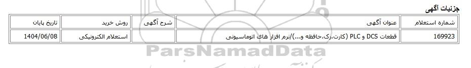 استعلام الکترونیکی قطعات DCS و PLC (کارترکحافظه و...)/نرم افزار های اتوماسیونی, استعلام الکترونیکی، قطعات DCS و PLC (کارت،رک،حافظه و...)/نرم افزار های اتوماسیونی