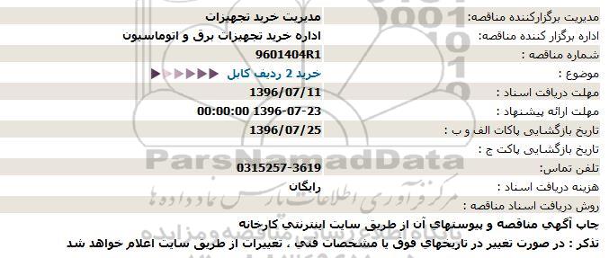 اداره برگزار کننده مناقصه: اداره خرید تجهیزات برق و اتوماسیون
