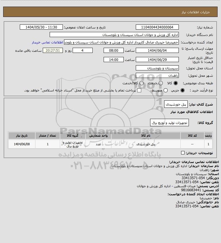 1 -- پنل خورشیدی عدد تجهیزات تولید و توزیع برق 1 1404/06/08