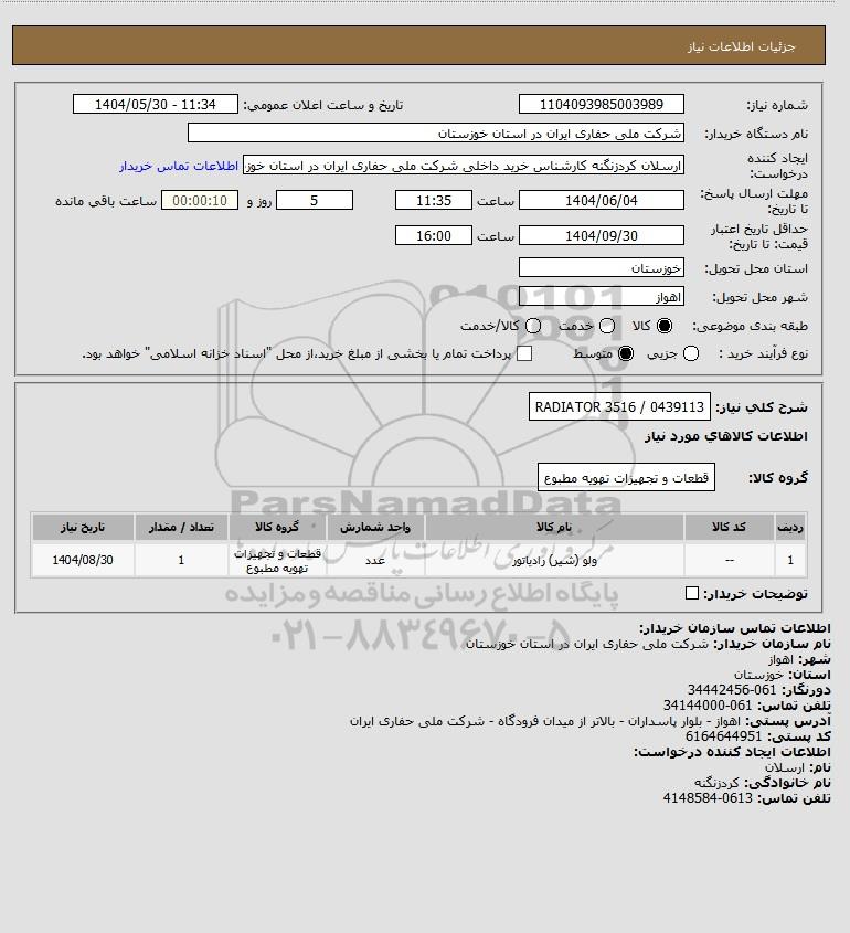 شرح کلی نیاز: 0439113 / RADIATOR 3516