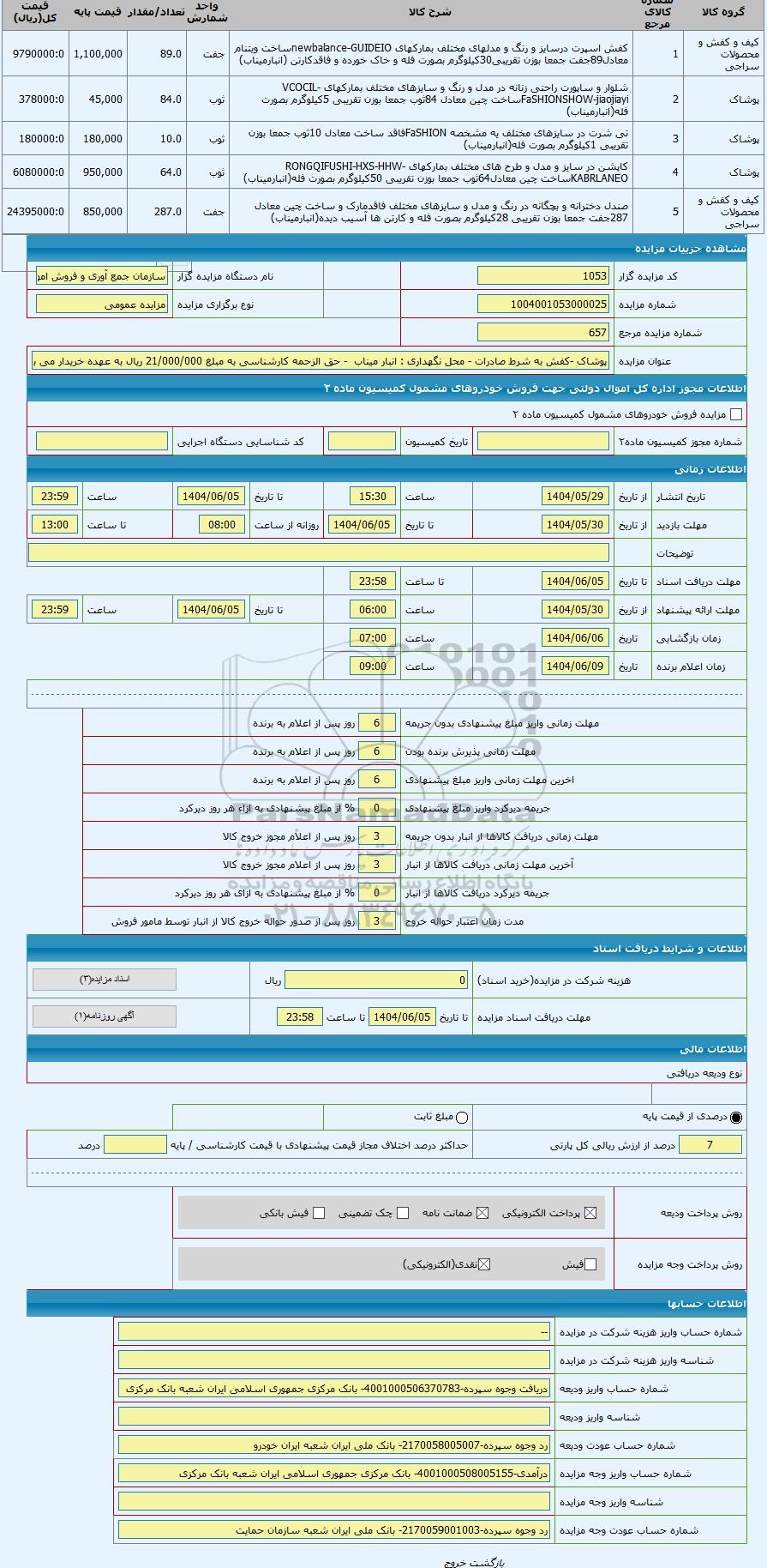 کد مزایده گزار1053نام دستگاه مزایده گزارسازمان جمع آوری و فروش اموال تملیکی