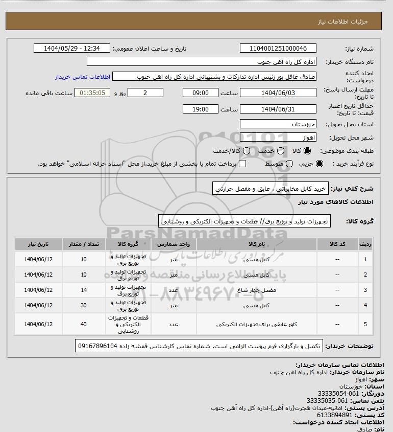 نام دستگاه خریدار:اداره کل راه اهن جنوب