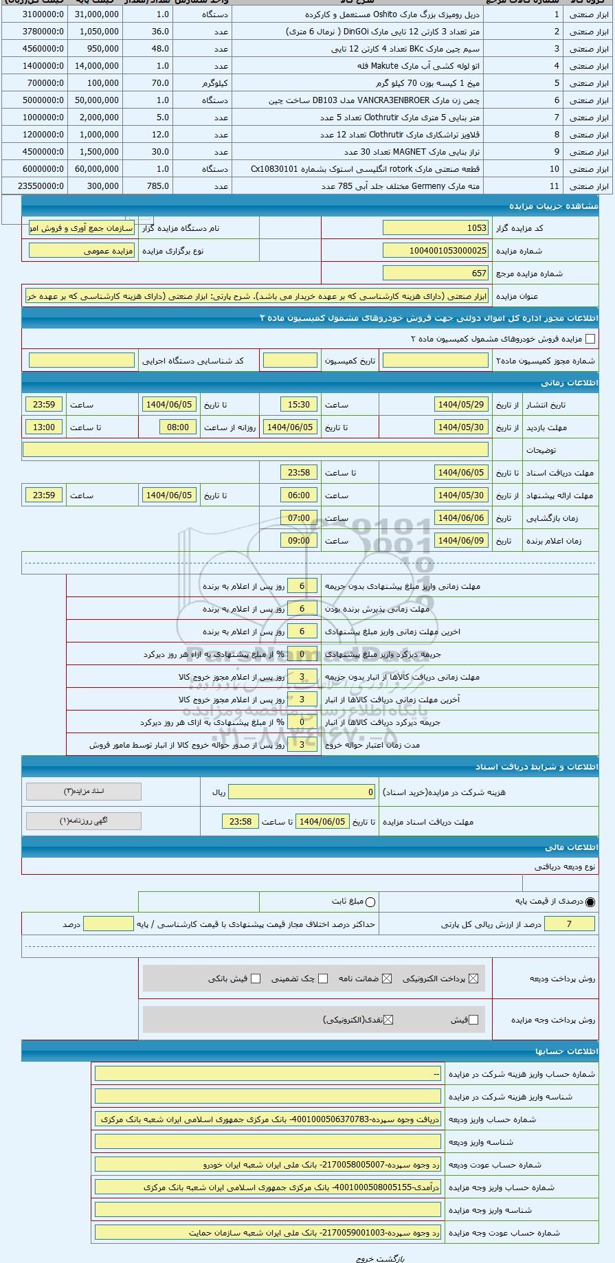 شماره مزایده 1004001053000025