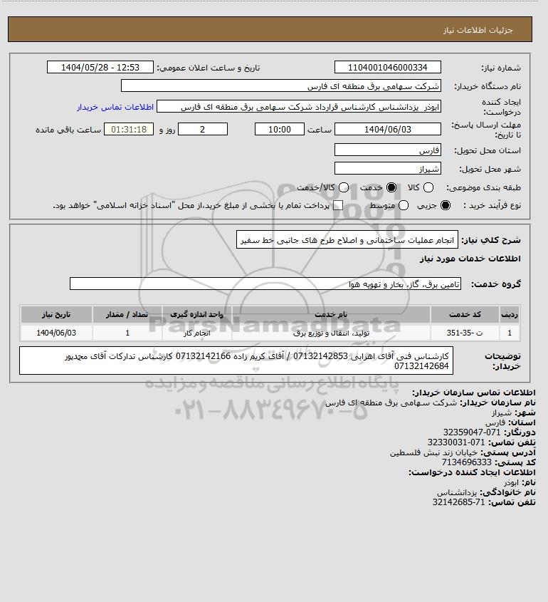 شرح کلی نیاز: انجام عملیات ساختمانی و اصلاح طرح های جانبی خط سفیر