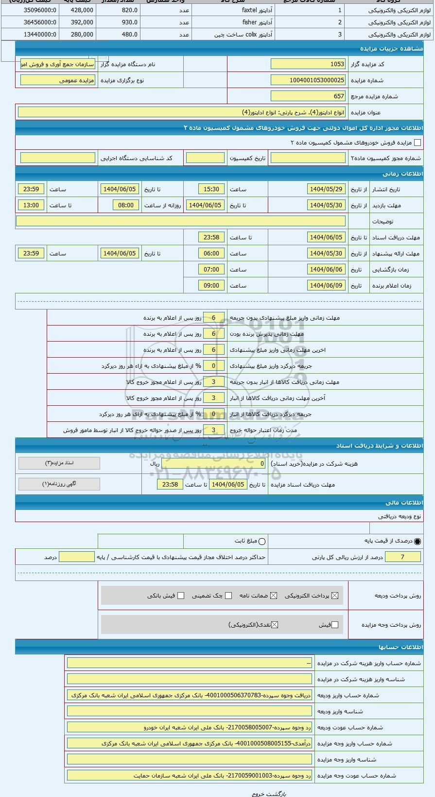 | عنوان مزایده | انواع اداپتور(4) | |||