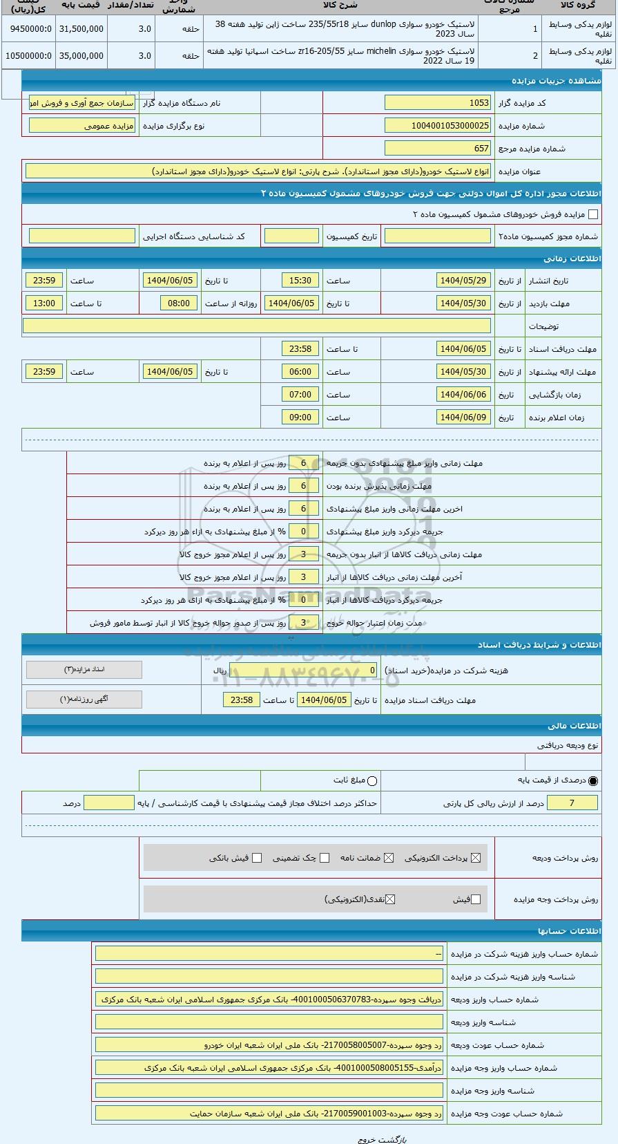 مزایده انواع لاستیک خودرو(دارای مجوز استاندارد), مزایده ، انواع لاستیک خودرو(دارای مجوز استاندارد)