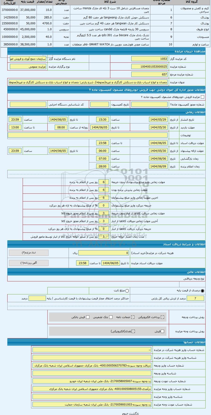 کد مزایده گزار1053نام دستگاه مزایده گزارسازمان جمع آوری و فروش اموال تملیکی