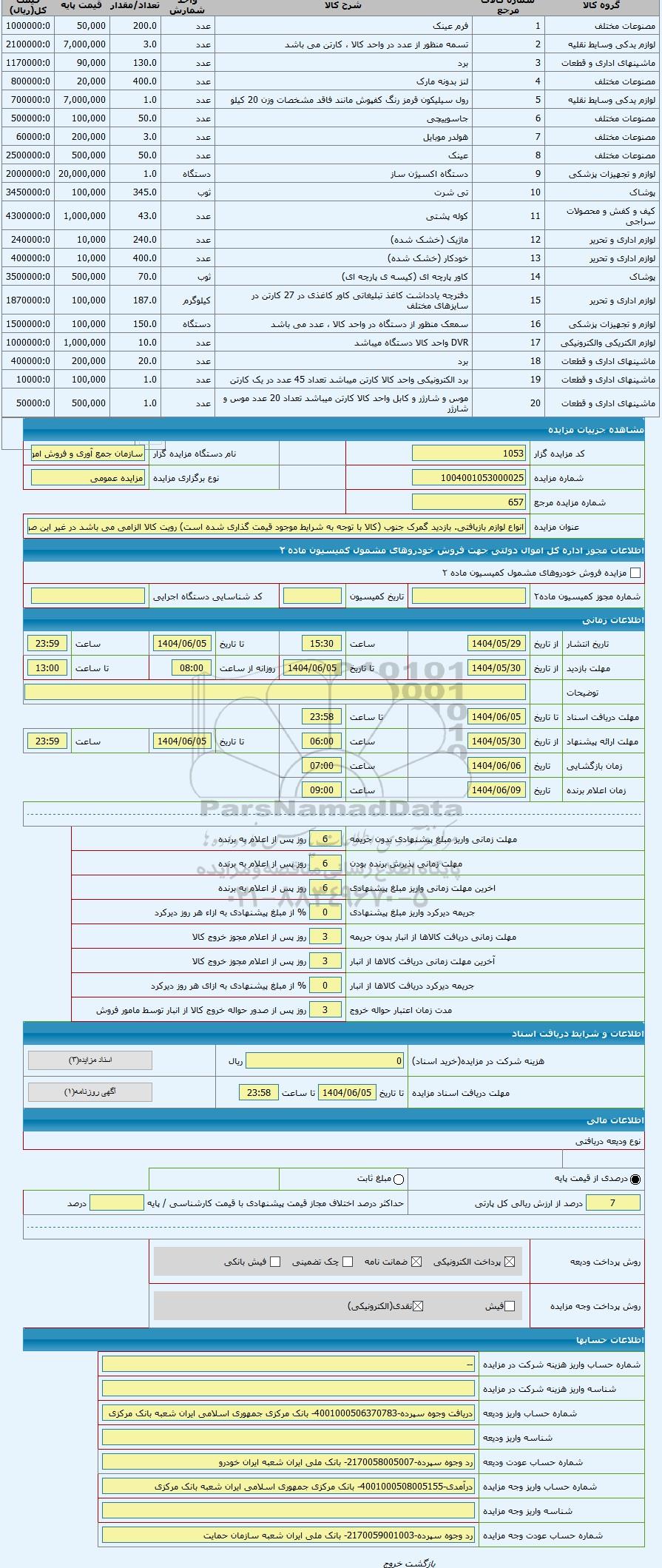 | کد مزایده گزار | 1053 | نام دستگاه مزایده گزار | سازمان جمع آوری و فروش اموال تملیکی | |