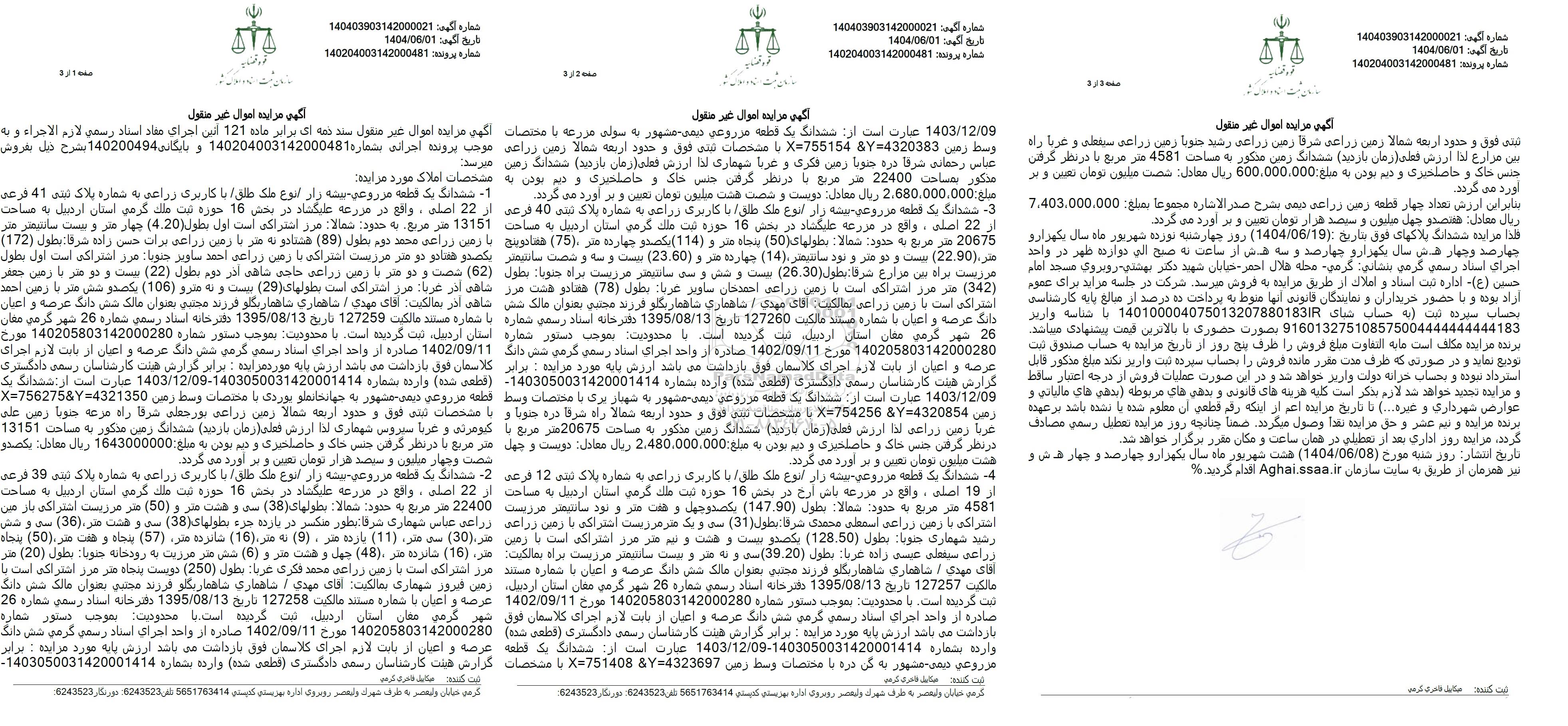مزایده فروش یک قطعه مزروعی به پلاک ثبتی 41 فرعی از 22 اصلی , مزایده فروش یک قطعه مزروعی به پلاک ثبتی 41 فرعی از 22 اصلی