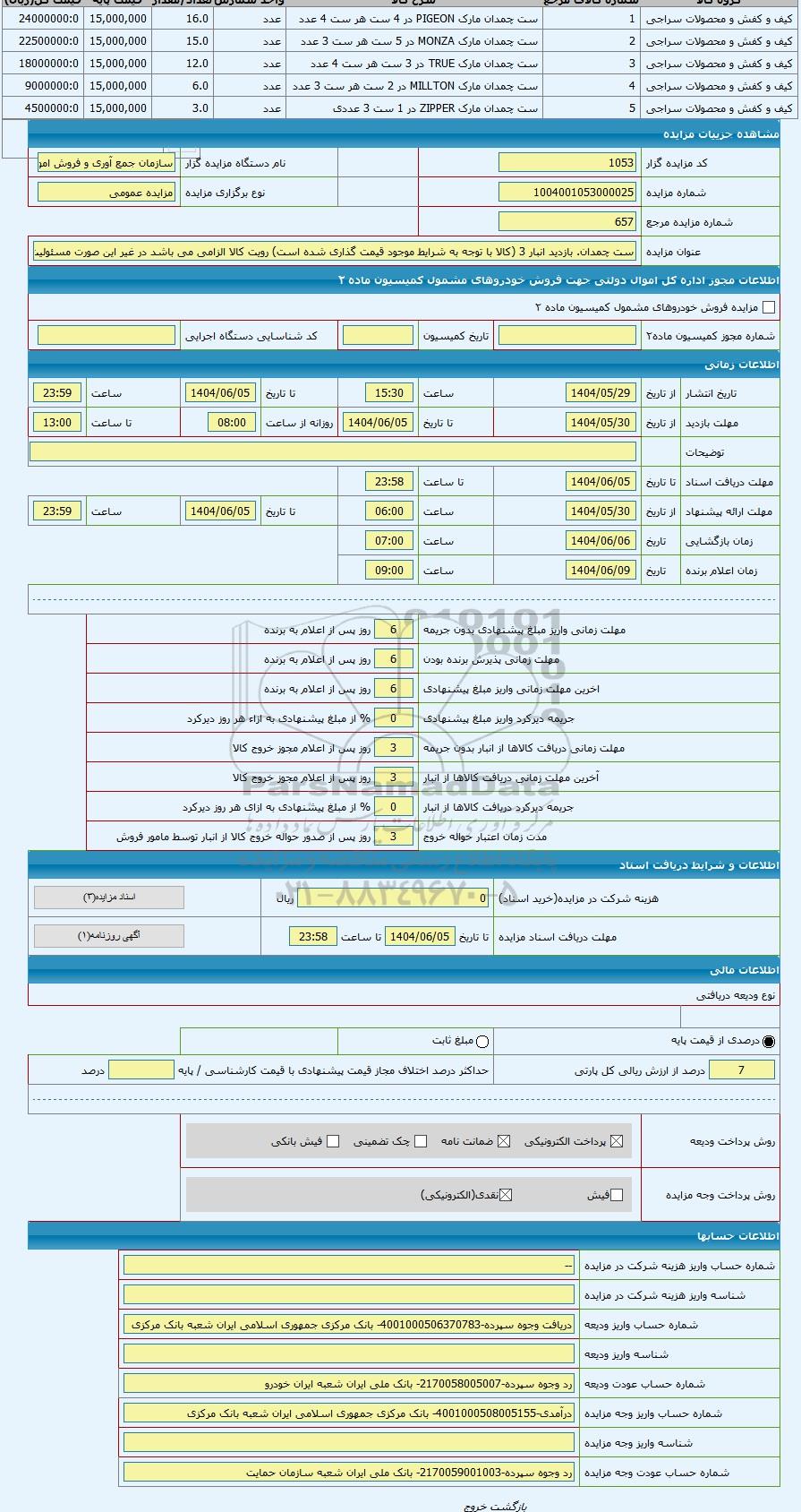 کد مزایده گزار1053نام دستگاه مزایده گزارسازمان جمع آوری و فروش اموال تملیکی