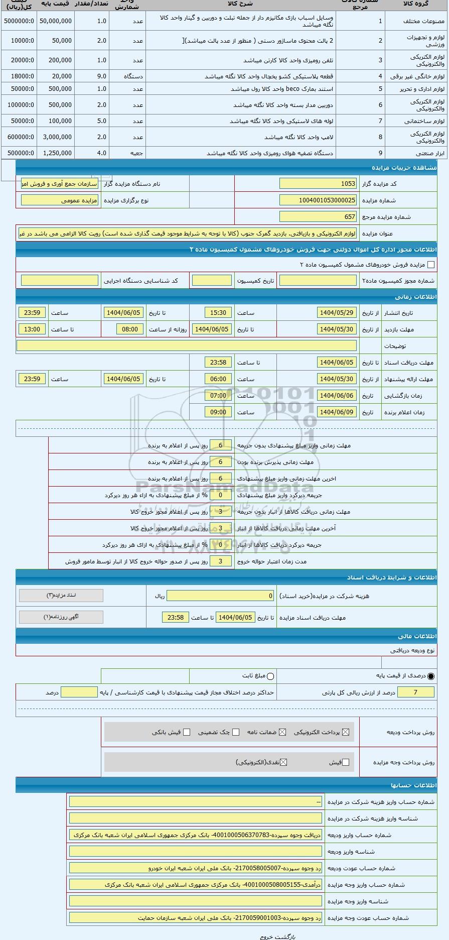 شماره پارتی1104001053010190نوع برگزاری مزایده مزایده عمومی