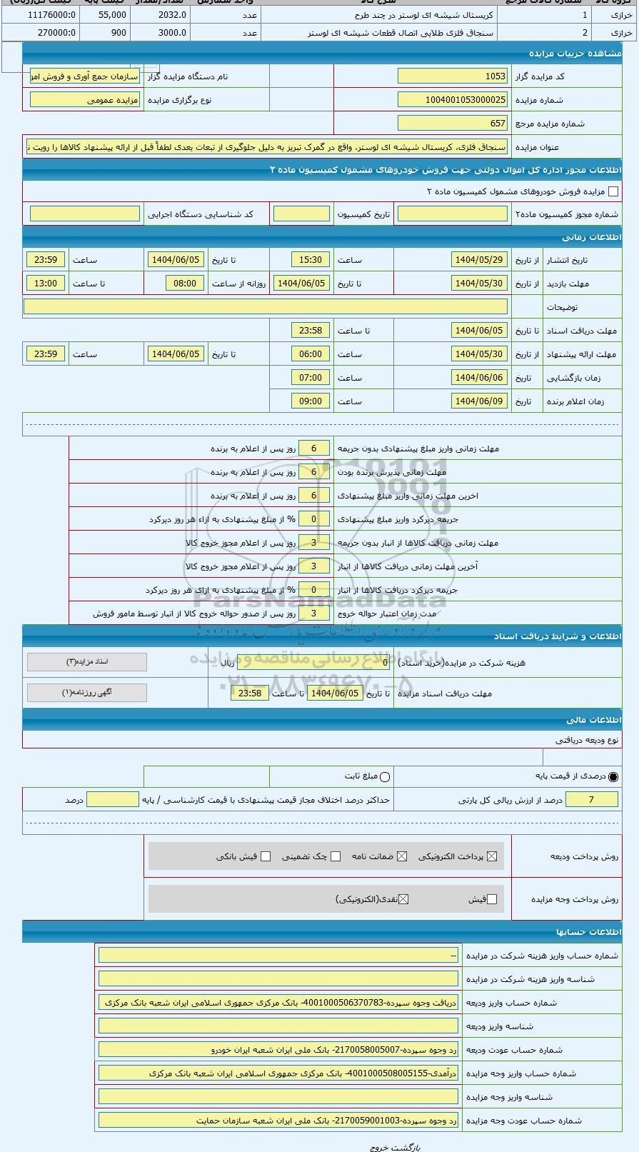 شماره پارتی1104001053010284نوع برگزاری مزایده مزایده عمومی