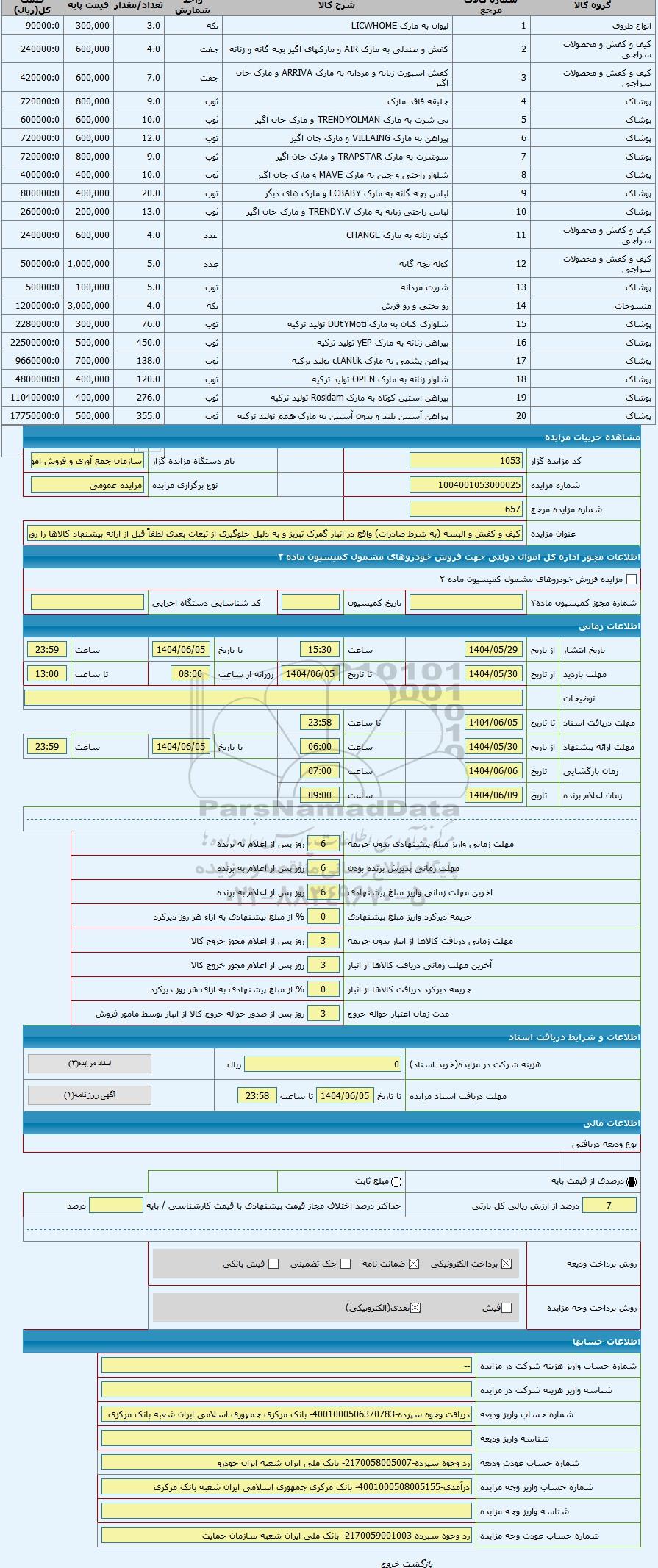 | شماره مزایده | 1004001053000025 | |||