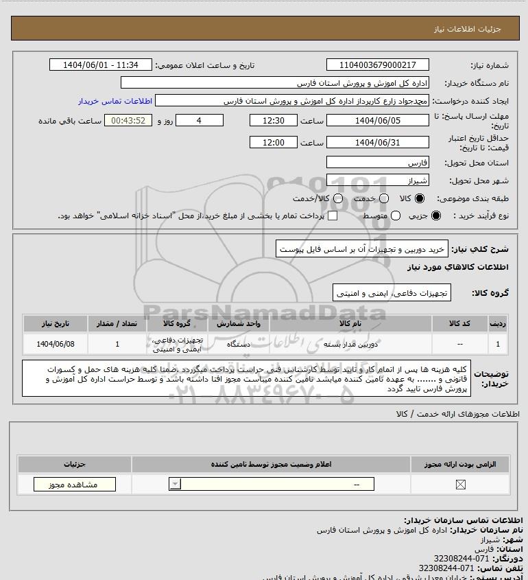نام سازمان خریدار: اداره کل اموزش و پرورش استان فارس