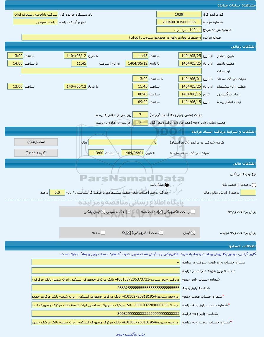 مزایده واحدهای تجاری واقع در محدوده سیروس (تهران) -مزایده واحد تجاری - استان تهران, مزایده ، واحدهای تجاری واقع در محدوده سیروس (تهران) -مزایده واحد تجاری - استان تهران