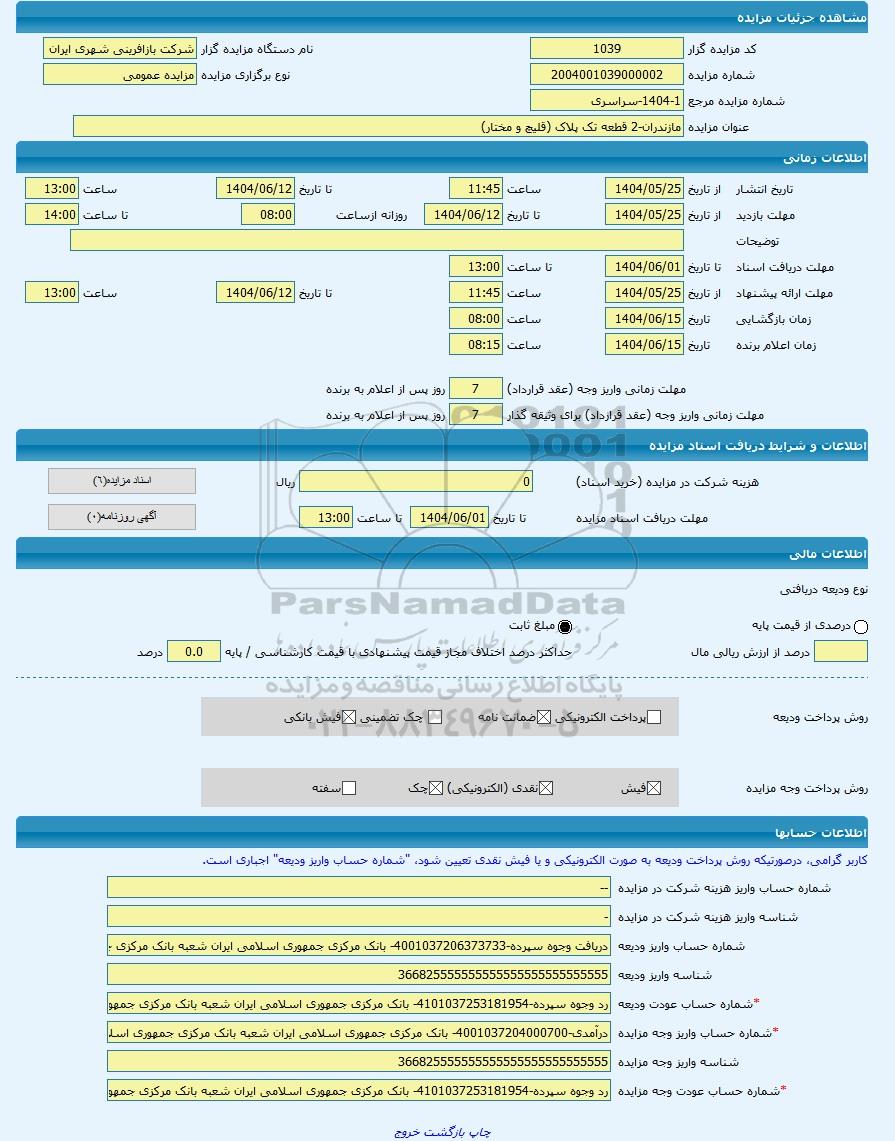 شماره مال2104001039000002نوع برگزاری مزایده مزایده عمومی
