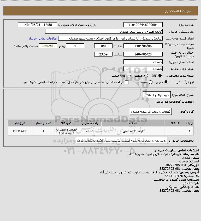 شرح کلی نیاز: خرید لوله و اتصالات