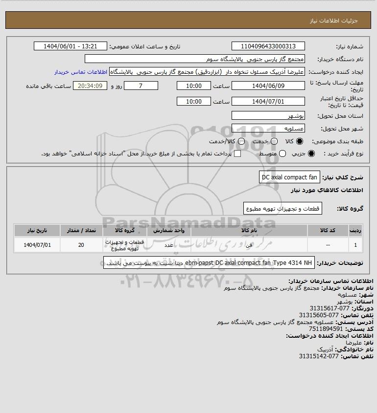 1 -- فن عدد قطعات و تجهیزات تهویه مطبوع 20 1404/07/01
