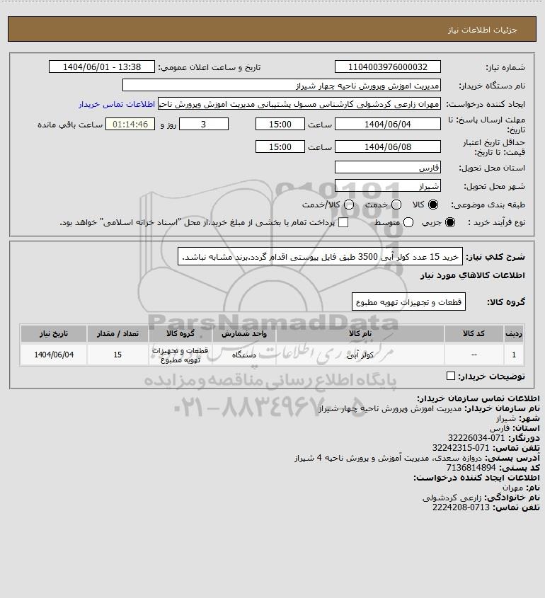 3 استعلام کولر گازی مطابق فایل پیوستی 9666090 1404/07/16 new not special not payed فارس