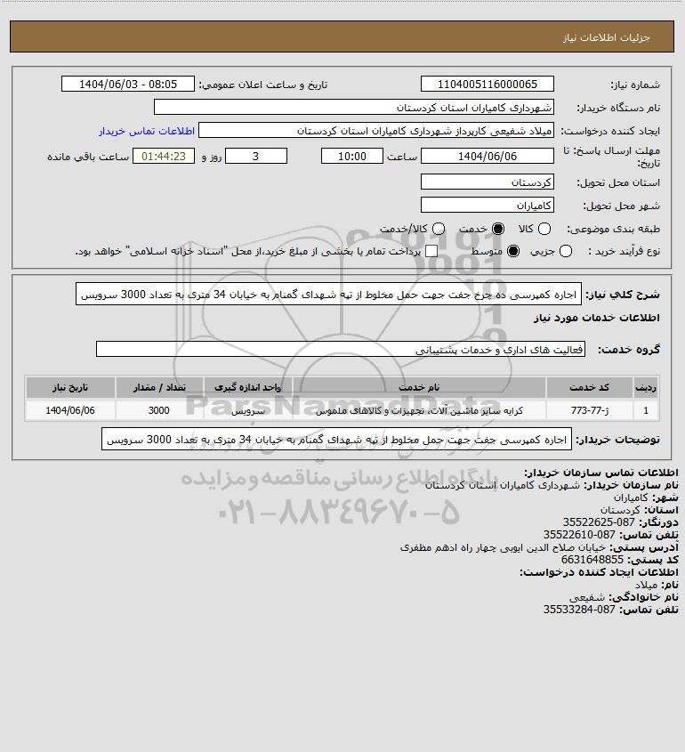 نام دستگاه خریدار:شهرداری کامیاران استان کردستان