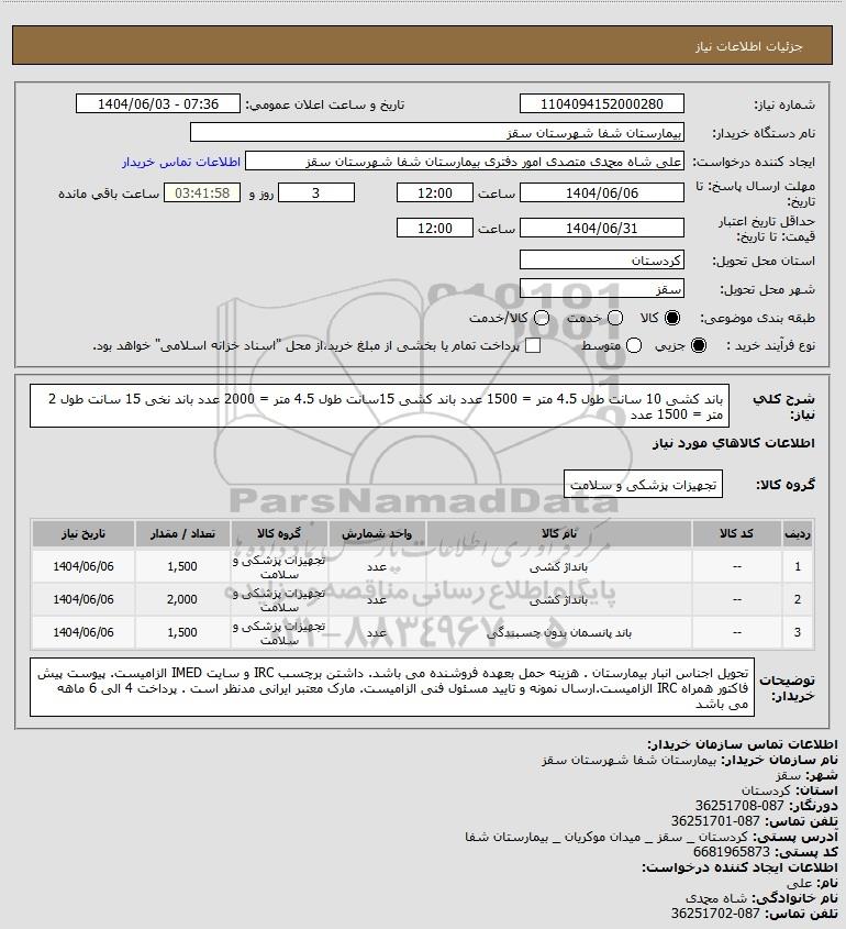 شرح کلی نیاز: باند کشی 10 سانت طول 4.5 متر = 1500 عدد