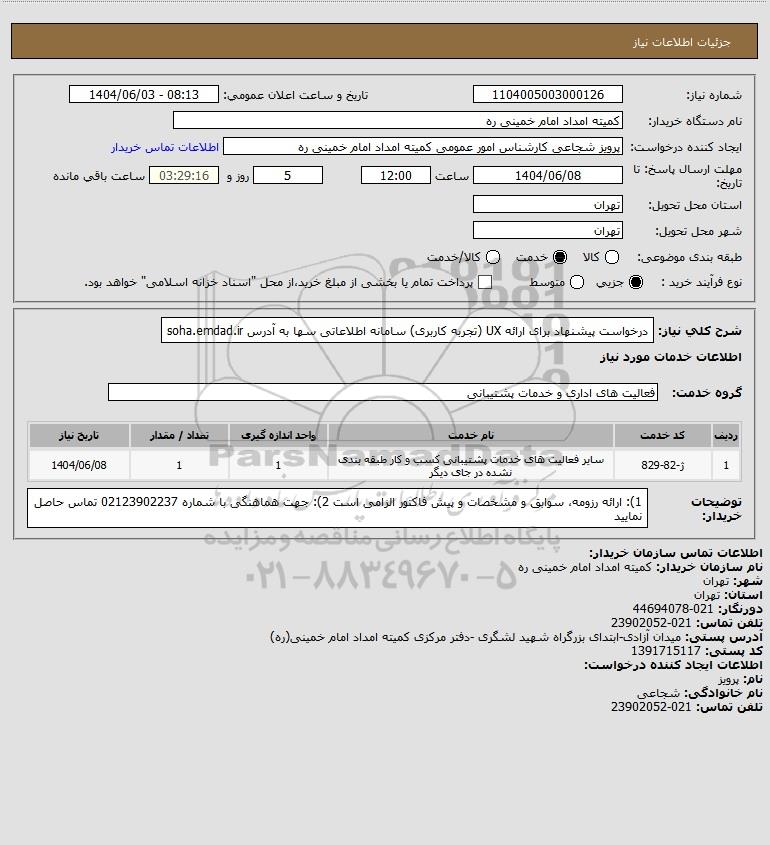 شرح کلی نیاز: درخواست پیشنهاد برای ارائه UX (تجربه کاربری) سامانه اطلاعاتی سها به آدرس soha.emdad.ir