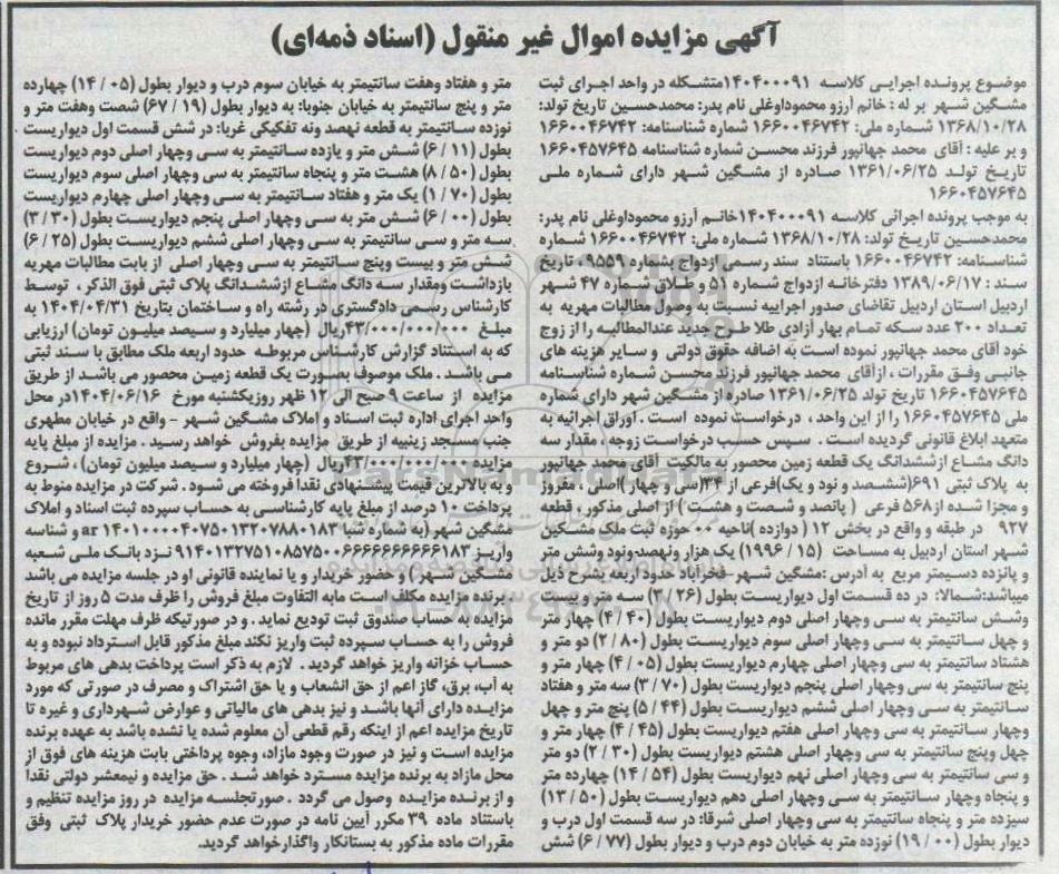 تاریخ مزایده 1404.06.16 ساعت 9 الی 12