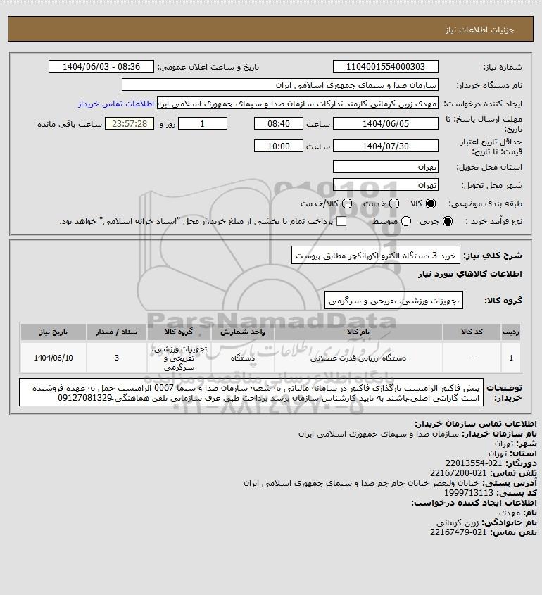 نام دستگاه خریدار:سازمان صدا و سیمای جمهوری اسلامی ایران