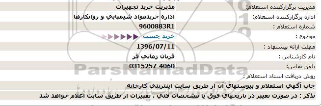 اداره برگزارکننده استعلام: اداره خریدمواد شیمیایی و روانكارها