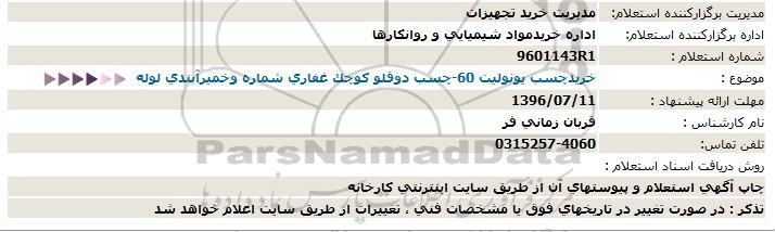 اداره برگزارکننده استعلام: اداره خرید مواد شیمیایی و روانكارها