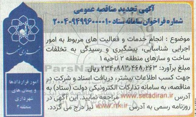 تجدید مناقصه انجام خدمات و فعالیت های مربوط به امور اجرایی شناسایی، پیشگیری و رسیدگی ..., تجدید مناقصه انجام خدمات و فعالیت های مربوط به امور اجرایی شناسایی، پیشگیری و رسیدگی ...