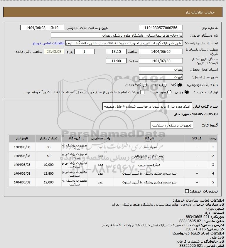 | 3 | -- | میکروست تزریق | عدد | تجهیزات پزشکی و سلامت | 10,000 | 1404/06/08 |