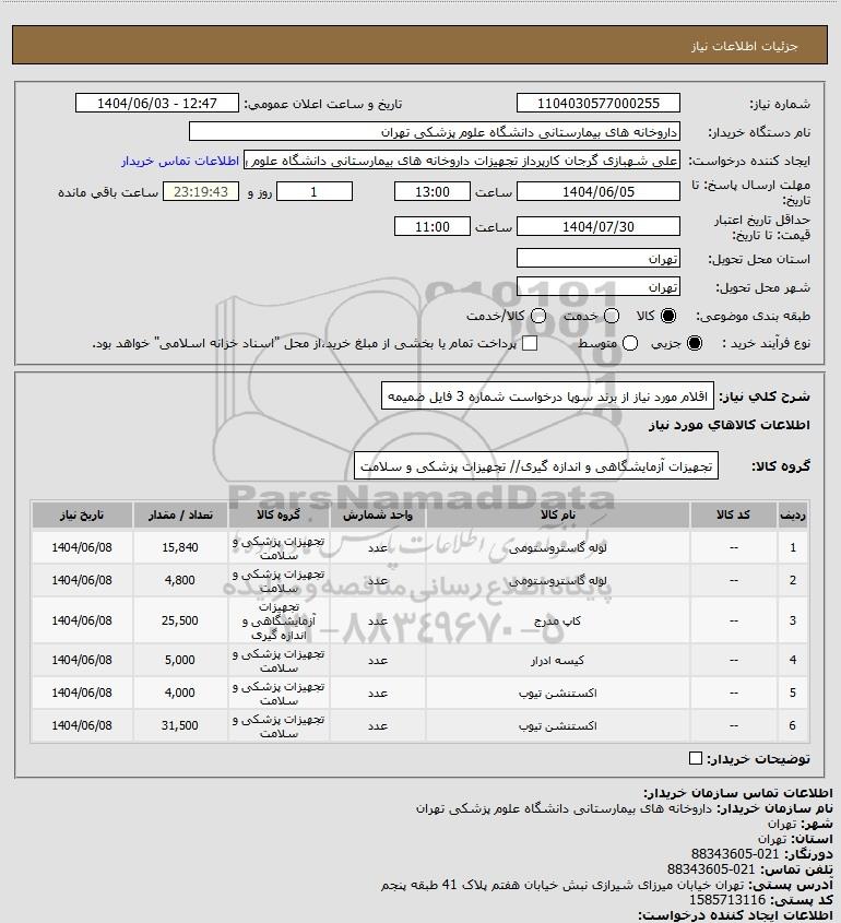 | 6 | -- | اکستنشن تیوب | عدد | تجهیزات پزشکی و سلامت | 31,500 | 1404/06/08 |