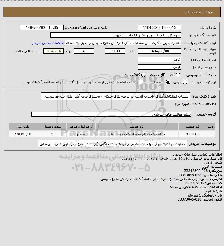 نام سازمان خریدار: اداره کل منابع طبیعی و ابخیزداری استان قزوین