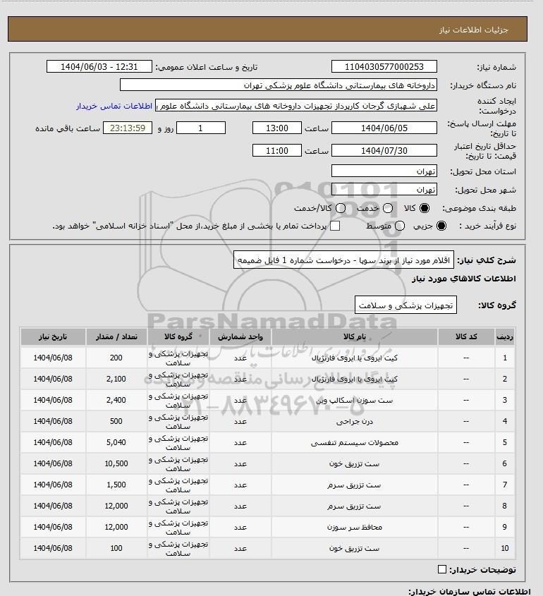 شرح کلی نیاز: اقلام مورد نیاز از برند سوپا - درخواست شماره 1 فایل ضمیمه