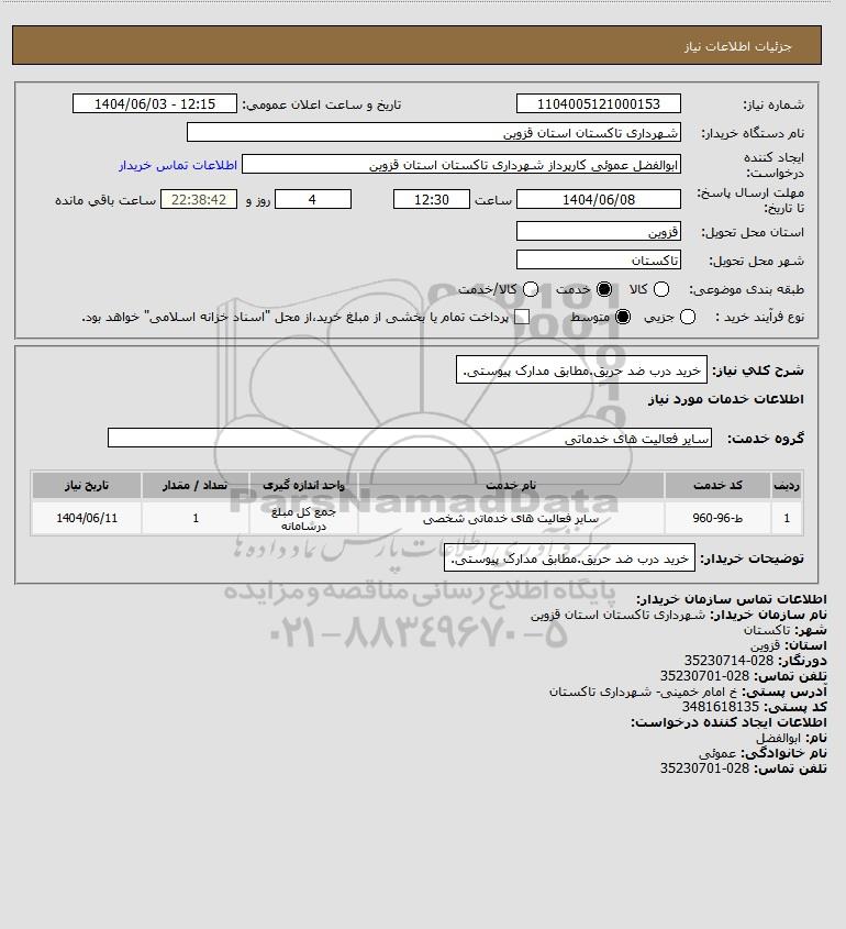 نام دستگاه خریدار:شهرداری تاکستان استان قزوین