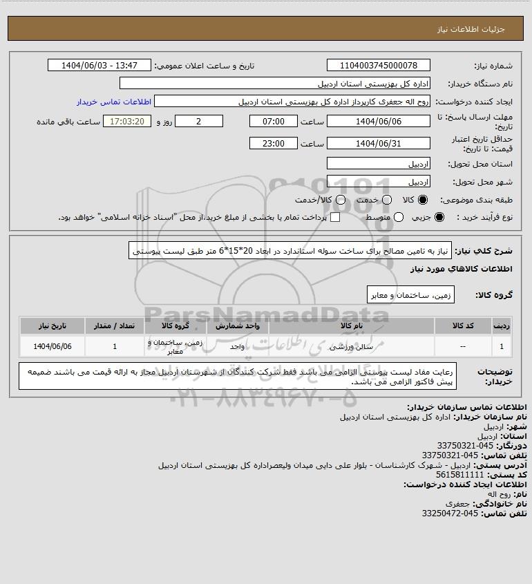 استعلام نیاز به تامین مصالح برای ساخت سوله استاندارد در ابعاد 20*15*6 متر طبق لیست پیوستی, استعلام نیاز به تامین مصالح برای ساخت سوله استاندارد در ابعاد 20*15*6 متر طبق لیست پیوستی