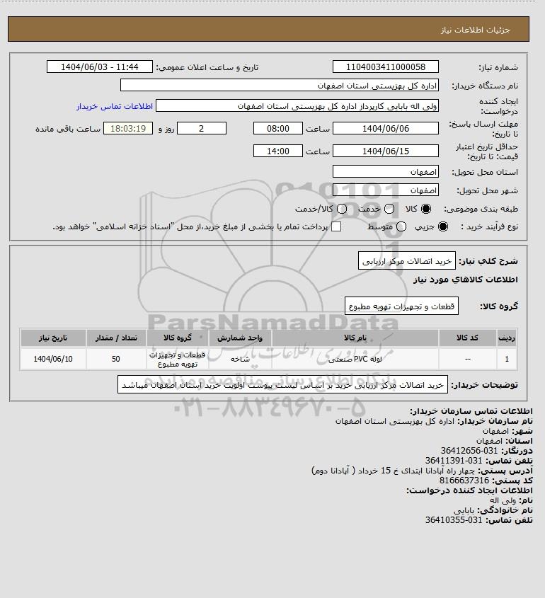 شرح کلی نیاز: خرید اتصالات مرکز ارزیابی